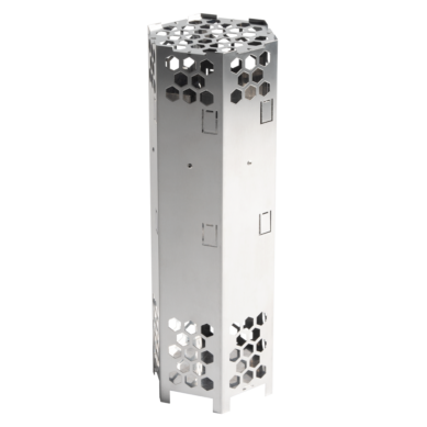 The air tunnel for the HIVE sauna heater is an accessory that expedites sauna heating by 25% and prolongs the useful life of the heating elements. It is made of stainless steel and is mounted inside the heater, between the sauna stones.