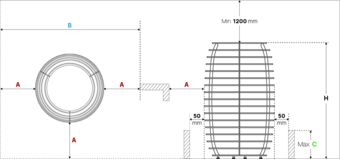 - When the heater is embedded, at least 350 mm of the heater should protrude from the sauna bench surface.
